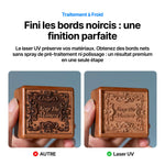 La F2 Ultra UV est une machine de gravure laser UV haute précision, dotée d’un laser de 5 W avec une longueur d’onde de 355 nm, ce qui permet un traitement à froid extrêmement fin : les bords restent nets, sans brûlure ni carbonisation. Elle peut graver des détails micrométriques (spot de moins de 10 µm) avec une précision qui dépasse largement celle des lasers CO₂ classiques.